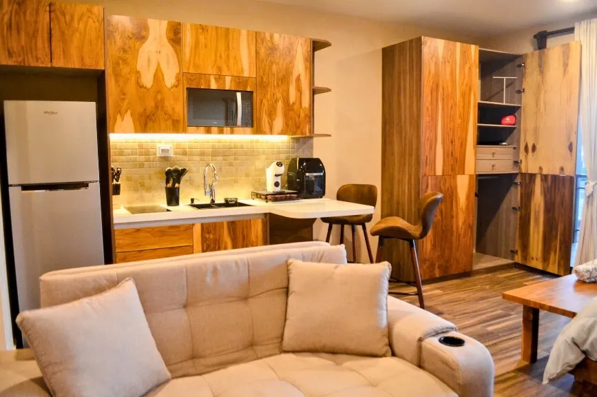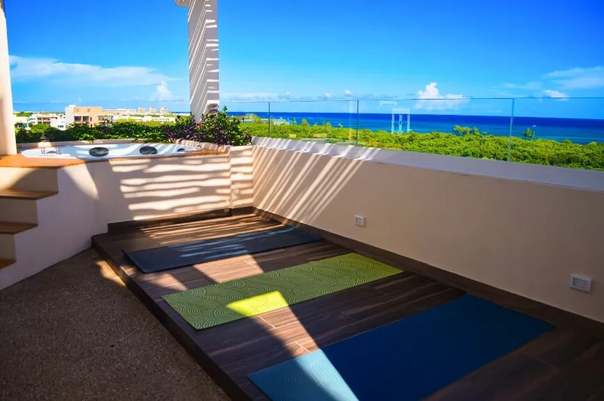 Moderní studio apartmány s kapacitou pro maximálně 3 osoby propojují vysoký komfort s přírodními prvky a nabízejí klidné zázemí pro dokonalý relax. K dispozici budeš mít také pečlivě navržené společné prostory – bazén, místo na jógu s podložkami, koutek s hamakami, dva velké elektrické grily i originální observatoř s teleskopy. Třešničkou na dortu je střešní vířivka pro 6 osob, ze které se ti naskytne dechberoucí výhled na Karibik a nedaleký ostrov Cozumel. Nechybí ani prádelna, takže si tu budeš připadat opravdu jako doma.